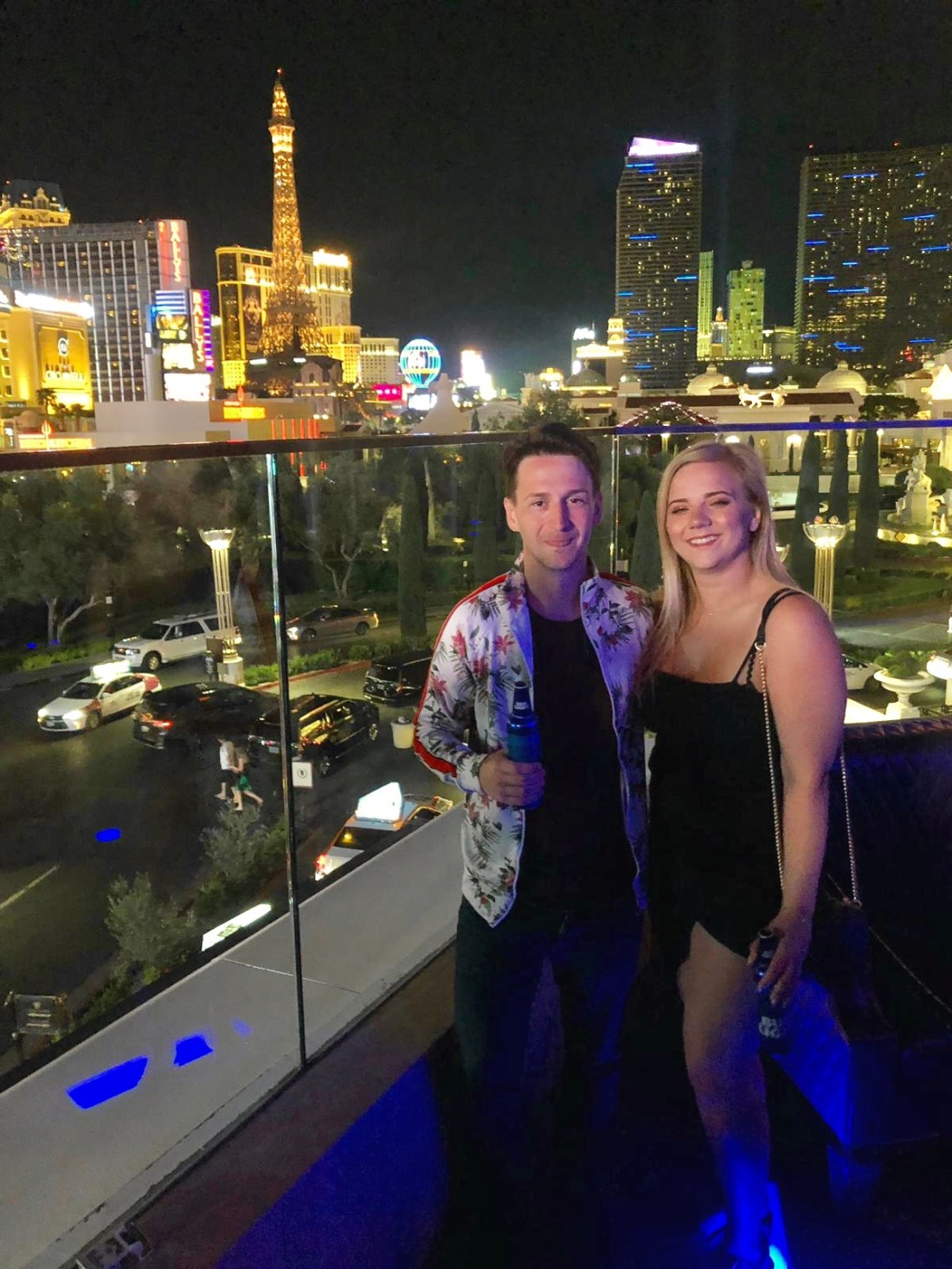 The next day after a few hours spent in the bill we headed to the Stratosphere, one of the first Casinos in Vegas and definitely the tallest. Famous for its views across the strip and spaceship shape, our plan was to head to the top get some pictures and ride the rides at the top of Casino. My day didn’t start off great, I dropped my phone the screen smashed and I had no access to photos, social media, banking it was a bit of a pain but I wasn’t going to let that ruin my holiday. When we got to the top which was high I got other people to take my pictures and I didn’t need my phone to ride the rides. I’m usually not afraid on rides, or if I’m not hungover I’m not scared of heights. The combination of the slight anxiety hangover and the rides being so high up did give me small palpitations but didn’t stop me from getting on them. Whilst we went up, Carolina don Alex stayed down in the casino and spent what I am told was a lifetime waiting for an old yank to check their IDs against a big book of authentic IDs. Once that was done they played wheel of fortune until we came back down, wheel of fortune quickly became Carolina’s favourite game. Before we left the Stratosphere we did see a new bride and groom, the bride was errmm “falling” or maybe even cascading out of her dress, some of you may think oh typical man to notice that, it was hard not to notice when the bride was shouting “look how good my tits look” to anyone who would pay attention.