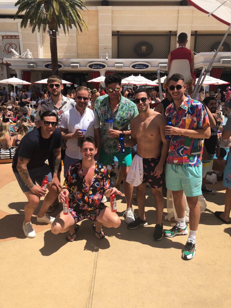 The DJ for the day was David Guetta and unfortunately I didn’t get to see him perform, I managed to have a couple of hours in the pool party, where I enjoyed spending 70 dollars on a drink….that drink must have been worth the money because it wasn’t long before I sort of “come round” and I was outside the pool party being told I couldn’t go back in because I was too drunk. I was lucky enough to catch a glimpse of David Guetta before being too drunk to remember what I saw. As you’ll know my phone was broke, Carolina was holding all my money and cards I couldn’t get a cab home because i didn’t know our address which is why I couldn’t walk either. I was told I could re enter the pool party but I’d have to pay again I tried explaining that I’d love to pay again but all my money was in the pool party this fell on deaf ears with the bouncers, my only option was to sit around and wait for someone to come out. Jon and Danielle came out first and rather than panic my friends I just told them to go back to their hotel and I was sure someone else would come out eventually, thankfully about an hour later people came out of the pool party filling me with stories of the bits I missed and explaining how they spent the time looking for me. Despite being kicked out the pool party it was still a great day the weather was nice, the bits of the party I experienced were good and it was at my favourite hotel. All in all a good day and pool party is definitely on my list of recommendations.